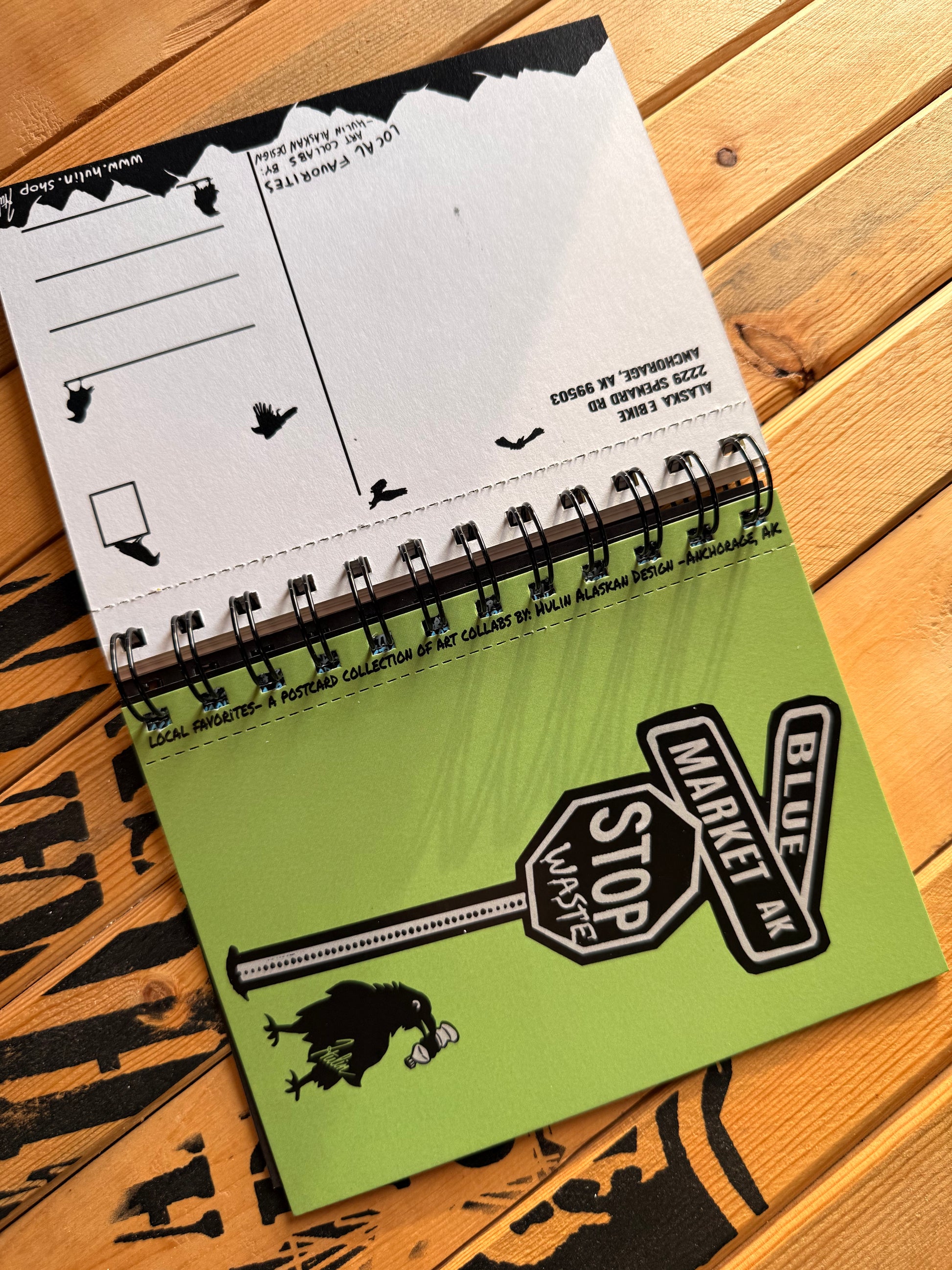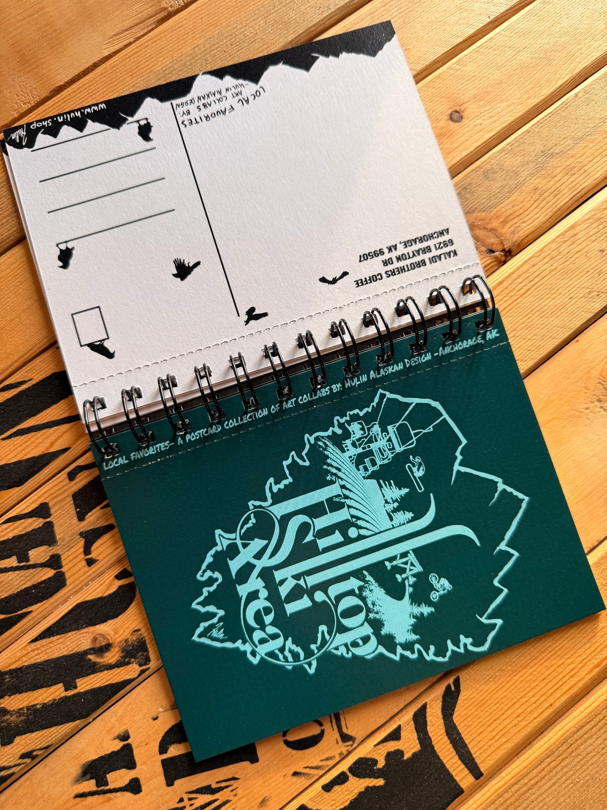 “Local Favorites” is a postcard collection of art collabs by me here at Hulin Alaskan Design in Anchorage Alaska.